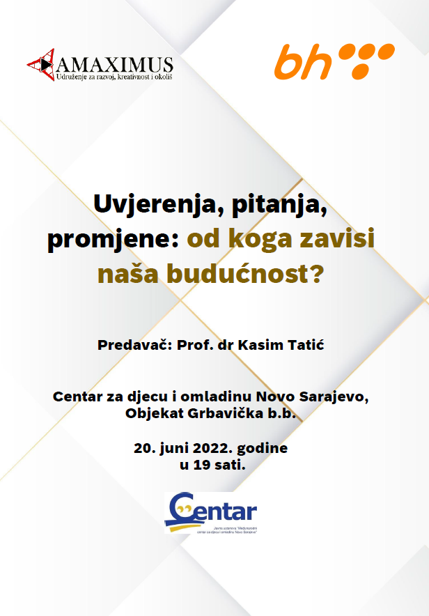 Intelektualni dernek pod nazivom: Uvjerenja, pitanja, promjene: od koga zavsi naša budućnost?, Lokacija: Centar za djecu i omladinu Novo Sarajevo, Objekat Grbavička b.b., Datum i vrijeme: 20. juni 2022. godine, u 19 sati