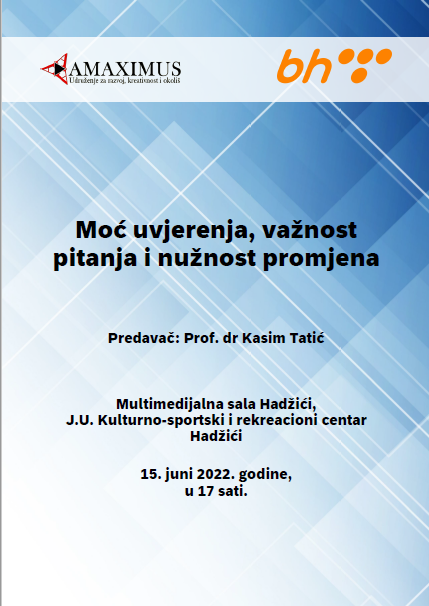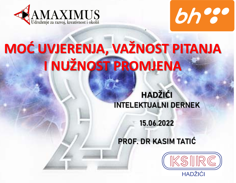 Intelektualni dernek pod nazivom: Moć uvjerenja, važnost pitanja i nužnost promjena., Lokacija: J.U. Kulturno-sportski i rekreacioni centar Hadžići, Multimedijalna sala Hadžići, Datum i vrijeme: 15. juni 2022, u 17 sati